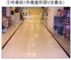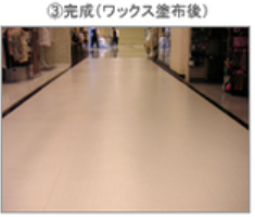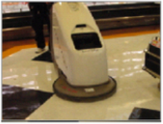 2.作業床面自動洗浄機などにより床面を清掃整備終了後、バフィングマシンにてワックスの塗膜表面を硬化し床面の傷・汚れ防止と光沢復元を図ります。
