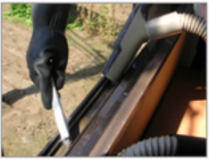 窓枠からブラインドを工具等を用いて外し屋外など洗浄できる作業場に運搬します。