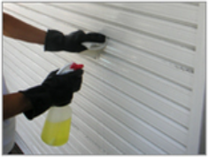 1.準備真鍮部分以外を専用洗剤・溶剤から守るため養生をします。清掃エリアに清掃表示板を立て周囲に注意を促す。ゴーグル、専用手袋等を装着して安全確保に務める。